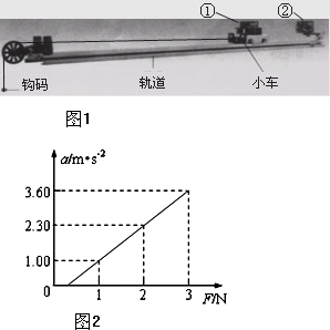 (1)下圖(1)是本實(shí)驗(yàn)的裝置圖,實(shí)驗(yàn)采用分體式位移傳感器,其發(fā)射部分是圖中的________,與數(shù)據(jù)采集器連接的是________部分.(填①或②)