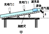 (1)做實(shí)驗(yàn)時(shí),將滑塊從圖甲所示位置靜止釋放,由數(shù)字計(jì)數(shù)器(圖中未畫(huà)出)可讀出遮光條通過(guò)光電門(mén)1、2的時(shí)間分別為Δt1、Δt2;用刻度尺測(cè)得兩個(gè)光電門(mén)中心之間的距離x,用游標(biāo)卡尺測(cè)得遮光條寬度d則滑塊經(jīng)過(guò)光電門(mén)1時(shí)的速度表達(dá)式v1=________;滑塊加速度的表達(dá)式α=________.(以上表達(dá)式均用已知字母表示).如圖乙所示,若用20分度的游標(biāo)卡尺測(cè)量遮光條的寬度,其讀數(shù)為_(kāi)_______mm.
