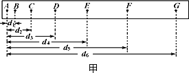 在做“研究勻變速直線運(yùn)動(dòng)”的實(shí)驗(yàn)時(shí),某同學(xué)得到一條用電火花計(jì)時(shí)器打下的紙帶如圖甲所示,并在其上取了A、B、C、D、E、F、G7個(gè)計(jì)數(shù)點(diǎn),每相鄰兩個(gè)計(jì)數(shù)點(diǎn)間還有4個(gè)點(diǎn)圖中沒有畫出,電火花計(jì)時(shí)器接220 V、50 Hz交流電源.他經(jīng)過測(cè)量并計(jì)算得到電火花計(jì)時(shí)器在打B、C、D、E、F各點(diǎn)時(shí)物體的瞬時(shí)速度如下表:
