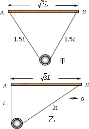 (2)若桿與環(huán)保持相對(duì)靜止,在空中沿AB方向水平向右做勻加速直線運(yùn)動(dòng),此時(shí)環(huán)恰好懸于A端的正下方,如圖乙所示.
