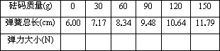 某同學在做探究彈力和彈簧伸長的關系的實驗中,設計了如圖所示的實驗裝置.所用的鉤碼每只的質量都是30 g,他先測出不掛鉤碼時彈簧的自然長度,再將5個鉤碼逐個掛在彈簧的下端,每次都測出相應的彈簧總長度,將數據填在了下面的表中.(彈力始終未超過彈性限度,取g=9.8 m/s2)