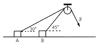 如圖,用恒力F=100N通過光滑的定滑輪,把靜止于水平面上的物體從位置A拉到位置B,物體可視為質(zhì)點.定滑輪離水平地面高H=10m,物體位于A時,繩子與水平地面夾角30°,物體位于B時,繩子與水平地面夾角45°,求細繩的拉力對物體做的功?