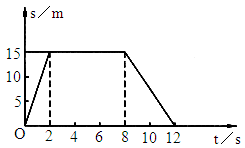 在距離斜坡底端10m的山坡上,一輛小車以4m/s的速度勻速向上行駛5s后,小車又以2m/s的速度勻速向下行駛.設位移和運動方向都以沿斜坡向下為正方向,試作出小車20s內的位移圖像和速度圖像,由圖像再確定小車在20s末的位置.