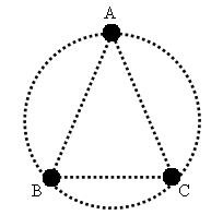 假設(shè)宇宙中有三個(gè)質(zhì)量均為m的天體,其天體中心恰位于邊長為a的等邊三角形的三個(gè)頂點(diǎn)A、B、C上,如圖所示,如果不考慮其他天體對它的引力,這三個(gè)天體要保持圖中的穩(wěn)定結(jié)構(gòu),角速度應(yīng)為多少?