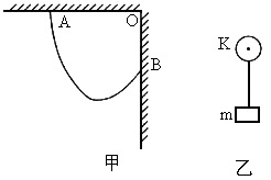 如圖甲所示,將一條輕而柔軟的細(xì)繩一端固定在天花板上的A點(diǎn),另一端固定在豎直墻上的B點(diǎn),A和B點(diǎn)到O點(diǎn)的距離相等,繩的長(zhǎng)度為OA的兩倍.圖乙所示的一質(zhì)量和半徑可忽略的動(dòng)滑輪K,滑輪下懸掛一質(zhì)量為m的重物,摩擦力可忽略,現(xiàn)將動(dòng)滑輪和重物一起掛到細(xì)繩上,在達(dá)到平衡時(shí),繩所受的拉力是多大?