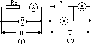 先后按圖的(1)、(2)兩圖所示電路測(cè)同一未知電阻的阻值,已知電路兩端電壓U保持不變,若按圖(1)所示電路測(cè)量,電壓表示數(shù)為6V,電流表示數(shù)為2mA,那么按圖(2)所示電路測(cè)量,電壓表和電流表示數(shù)應(yīng)分別滿足
