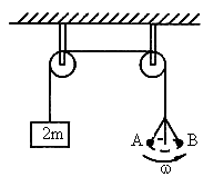 如圖所示的裝置中,A、B兩球的質(zhì)量都為m,且繞豎直軸做同樣的圓錐擺運(yùn)動(dòng),木塊的質(zhì)量為2m,則木塊的運(yùn)動(dòng)情況是
