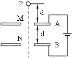 如圖所示,A、B為平行金屬板,兩板相距為d,分別與電源兩極相連,兩板的中央各有一小孔M和N,今有一帶電質(zhì)點(diǎn),自A板上方相距為d的P點(diǎn)由靜止自由下落(P、M、N在同一豎直線上),空氣阻力忽略不計(jì),到達(dá)N孔時(shí)速度恰好為零,然后沿原路返回.若保持兩極板間的電壓不變,則