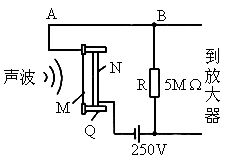 電容式話筒的保真度比動圈式話筒好,其工作原理如圖所示.Q是絕緣支架,薄金屬膜M和固定電極N形成一個電容器,被直流電源充電,當聲波使膜片振動時,電容發(fā)生變化,電路中形成變化的電流.當膜片向右運動的過程有