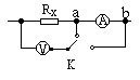 將K分別與a、b兩點接觸一下,若電流表讀數(shù)有顯著變化,則K應接在______處;若電壓表讀數(shù)顯著變化,則K應接在______處.