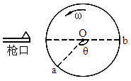 如圖所示,直徑為d的紙筒以角速度ω繞垂直于紙面的O軸勻速轉(zhuǎn)動(dòng)(圖示為截面).從槍口射出的子彈沿直徑穿過(guò)紙筒,在圓周上先后留下a、b兩個(gè)彈孔.已知aO與bO的夾角為θ,求子彈的速度.