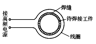 高頻焊接是一種常用的焊接方法,其焊接的原理如圖所示,將半徑為10cm的待焊接的圓形金屬工件放在導線做成的1 000匝線圈中,然后在線圈中通以高頻的交變電流,線圈產生垂直于金屬工件所在平面的變化磁場,磁場的磁感應強度B的變化率為