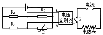 時,電壓鑒別器使S斷開,停止加熱,求恒溫箱內恒定溫度.