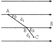 如圖所示,在某勻強電場中有A、B、C三點,它們的位置和場強方向如圖所示,A點的電勢最高,C點的電勢最低.現(xiàn)已知B點和C點之間的電勢差為