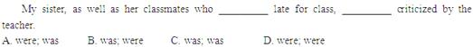 | A.was | B.were | C.a(chǎn)re | D.have |