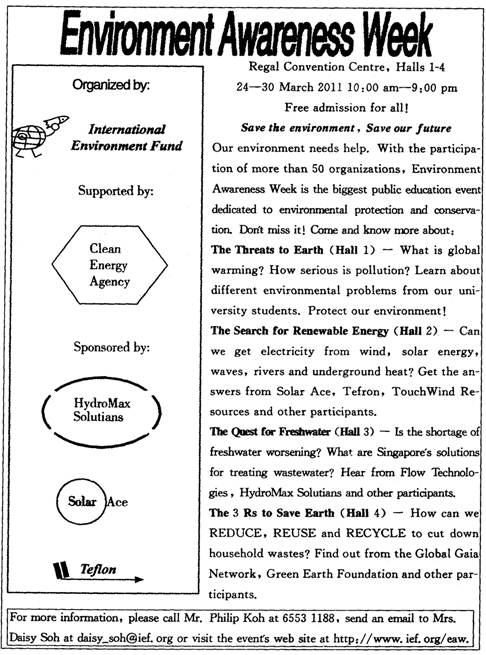 | B.You can send an email to Mrs.Daisy Soh for more information. |