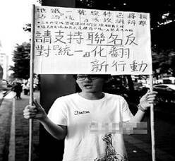 The banner that Chen held said: “The special features of Line 1 stations will disappear. The program is also a waste of resources. I hope you will help my protest be signing my subway petition(請愿) against the renovation .”