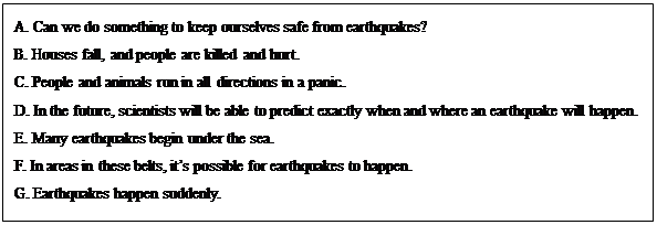 When some plates of the earth move suddenly, an earthquake happens. __61__ Earthquakes may happen anywhere on the earth. They often happen near mountains.