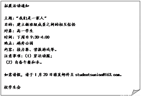 你是某國際學(xué)校學(xué)生會主席,要為一項(xiàng)活動寫英文通知。
