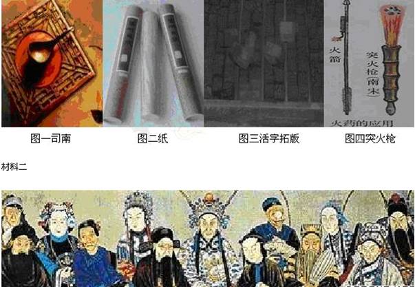 (1)闡述圖一、圖三、圖四等三幅圖所代表的中國古代科技對歐洲社會發(fā)展進程重大影響?