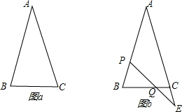 (2)P、Q分別是AB、BC上的點(diǎn),且BP:CQ=2:1,連接PQ并延長(zhǎng),交AC的延長(zhǎng)線于點(diǎn)E,設(shè)CQ=x,CE=y(如圖b).