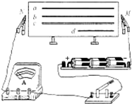 在探究“導(dǎo)體的電阻跟哪些因素有關(guān)”的問(wèn)題時(shí),某同學(xué)做了如下探究實(shí)驗(yàn):該圖是他進(jìn)行實(shí)驗(yàn)探究的器材,演示板上固定了四條金屬,a、b、c三條長(zhǎng)度均是1m,d的長(zhǎng)度是0.5m;a、b的橫截面積相同,材料不同;a、c的材料相同,但c的橫截面積大于a,a、d的材料和橫截面積都相同。