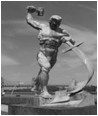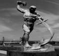 下圖為聯(lián)合國(guó)總部矗立的雕塑——《鑄劍為犁》的照片,它所反映的世界主題是