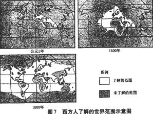 (1)讀圖7,指出西方人了解的世界范圍發(fā)生了什么變化,世界各民族、各地區(qū)之間的關(guān)系出現(xiàn)了怎樣的發(fā)展趨勢。