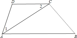 如圖,AC平分∠DAB,∠1=∠2,則AB∥