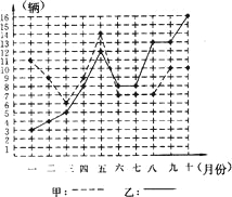 (2004•濟(jì)寧)某市甲、乙兩個(gè)汽車(chē)銷(xiāo)售公司,去年一至十月份每月銷(xiāo)售同種品牌汽車(chē)的情況如圖所示: