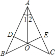 | 如圖所示,已知CD⊥AB,BE⊥ AC,垂足分別為D、E,BE、CD相交于O點,∠1=∠2,圖中全等三角形共有 |
