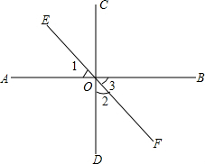 已知:如圖,∠1=35°,AB⊥CD,垂足為O,EF經(jīng)過點O.求∠EOB、∠3、∠2的度數(shù).