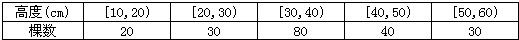 高度(cm) | 10~20 | 20~30 | 30~40 | 40~50 | 50~60 |