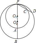 如圖,⊙O1、⊙O2內(nèi)切于P點,連心線和⊙O1、⊙O2分別交于A、B兩點,過P點的直線與⊙O1、⊙O2分別交于C、D兩點,若∠BPC=60°,AB=2,則CD=( 。