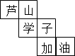 小明為了鼓勵蘆山地震災區(qū)的學生早日走出陰影,好好學習,制作了一個正方體禮盒(如圖).禮盒每個面上各有一個字,連起來組成“蘆山學子加油”,其中“蘆”的對面是“學”,“加”的對面是“油”,則它的平面展開圖可能是