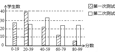 (3)第一次測試中,中位數(shù)在 分數(shù)段,第二次測試中,中位數(shù)在 分數(shù)段.