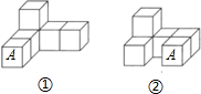 如圖,是由6個棱長為1個單位的正方體擺放而成的,將正方體A向右平移2個單位,向后平移1個單位后,所得幾何體的視圖【 】![]()