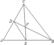 | 如圖,在△ABC中,∠A=60°,∠ABC、∠ACB的平分線分別交AC、AB于點D、E,CE、BD相交于點F,連接DE.下列結(jié)論: ①DE=