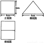 一個多面體的三視圖分別為正方形、等腰三角形和矩形,如圖所示,則該多面體的體積為( )