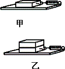 如圖是“研究滑動(dòng)摩擦力與壓力關(guān)系”的實(shí)驗(yàn)。在甲、乙兩次實(shí)驗(yàn)中,用彈簧測力計(jì)沿水平方向拉木塊,使木塊在水平木板上作勻速直線運(yùn)動(dòng)。則下列說法正確的是( )![]()