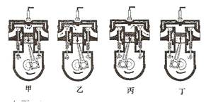 | 單缸四沖程內(nèi)燃機(jī)的四個(gè)沖程的示意圖如圖所示,下列關(guān)于這種內(nèi)燃機(jī)一個(gè)工作循環(huán)中四個(gè)沖程的順序排列正確的是 |