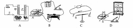 | A、 線圈通電后吸引大頭針 | B、 導(dǎo)線左右運(yùn)動(dòng)時(shí)產(chǎn)生電流 | C、 閉合開關(guān)后小磁針偏轉(zhuǎn) | D、 直導(dǎo)線通電時(shí)發(fā)生運(yùn)動(dòng) |