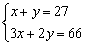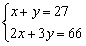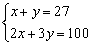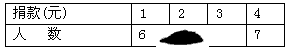 | 某校初三(2)班40名同學(xué)為“希望工程”捐款,共捐款100元,捐款情況如下表:表格中捐款2元和3元的人數(shù)不小心被墨水污染已看不清楚.若設(shè)捐款2元的有x名同學(xué),捐款3元的有y名同學(xué),根據(jù)題意,可得方程組 |
