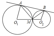 | 已知⊙O1和⊙O2外切于M,AB是⊙O1和⊙O2的外公切線(xiàn),A、B為切點(diǎn),若MA=4cm,MB=3cm,則M到AB的距離是 |