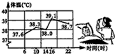 | 下圖是護(hù)士統(tǒng)計(jì)一位病人的體溫變化圖,這位病人中午12時(shí)的體溫約為 |
