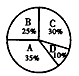 | 下圖所示的扇形圖是對(duì)某班學(xué)生知道父母生日情況的調(diào)查,A表示只知道父親生日,B表示只知道母親生日,C表示知道父母兩人的生日,D表示都不知道,若該班有40名學(xué)生,則知道母親生日的人數(shù)有 |