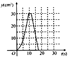 | 如圖,在直角梯形ABCD中,AD∥BC,∠C=90°,CD=6cm,AD=2cm,動點P、Q同時從點B出發(fā),點P沿B、AD、DC運動到點C停止,點Q沿BC運動到C點停止,兩點運動時的速度都是1cm/s,且當(dāng)點P到達點A時,點Q正好到達點C,設(shè)P點運動的時間為t(s),△BPQ的面積為y (cm2),下圖中能正確表示整個運動中y關(guān)于t的函數(shù)關(guān)系的大致圖象是 |