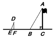 | 某校數(shù)學(xué)興趣小組為測量學(xué)校旗桿AC的高度,在點(diǎn)F處豎立一根長為1.5米的標(biāo)桿DF,如圖所示,量出DF的影子EF的長度為1米,再量出旗桿AC的影子BC的長度為6米,那么旗桿AC的高度為 |