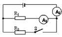 | 如圖所示的電路中,電源電壓為2V保持不變,電阻R1=5Ω,R2=10Ω。當開關(guān)S斷開時,電流表A1的示數(shù)是 A;當開關(guān)S閉合時,電流表A2的示數(shù)是 A。 |