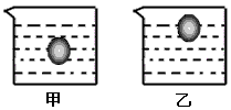 | 如圖所示,甲、乙兩杯鹽水的密度分別為ρ甲、ρ乙,同一只雞蛋先后放入甲、乙兩杯中,在甲杯處于懸浮狀態(tài).所受浮力為F甲,在乙杯處于漂浮狀態(tài),所受浮力為F乙。可以肯定的是: |
